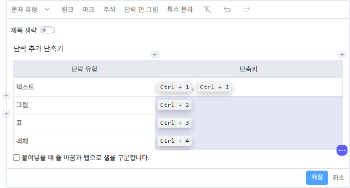 선택한 단락 유형이 같으면 해당 단락의 옵션도 함께 설정할 수 있습니다.