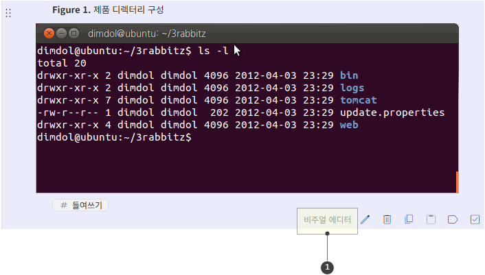장 차례에서 <내용 편집> 링크를 클릭하면 에디터가 열립니다.