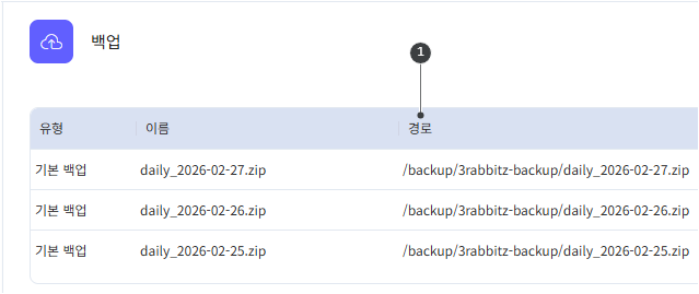 먼저 복원할 1백업 파일 위치를 <관리 | 서버 관리 | 백업> 메뉴에서 확인합니다.