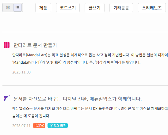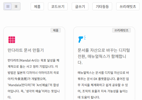 블로그의 포스트를 그리드 또는 목록으로 볼 수 있습니다.