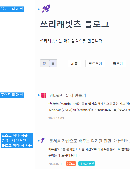 블로그 또는 포스트에 설정한 테마 색으로 아이콘 색상을 설정합니다.