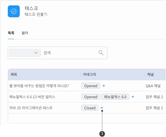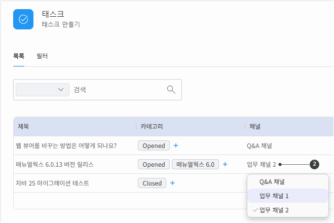 태스크 목록에서 채널 변경하기
