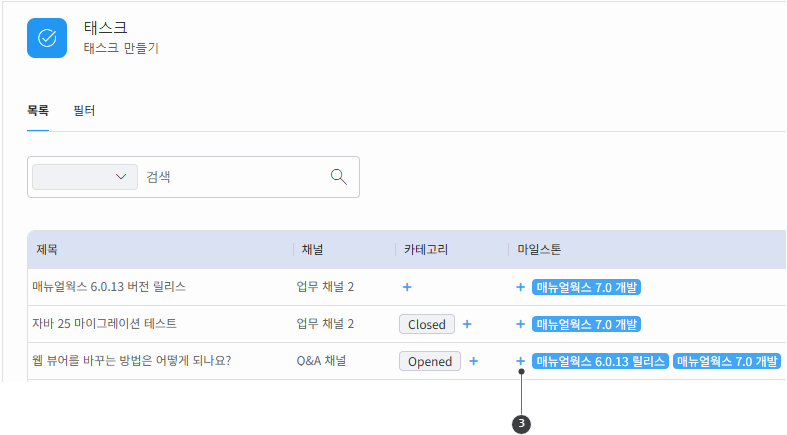 태스트 목록에 마일스톤 보여주기