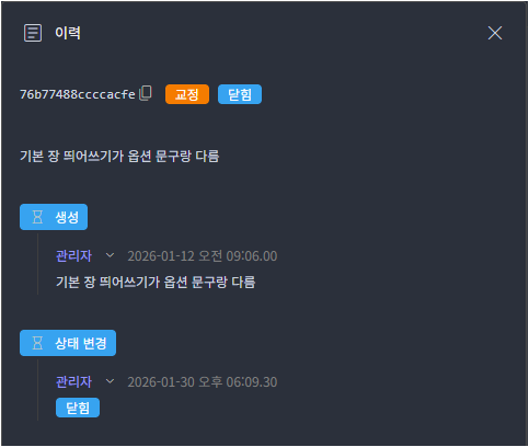 진척 관리 항목의 변경 이력을 확인할 수 있습니다.