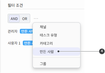 필터에 4만든 사람 조건을 설정합니다.