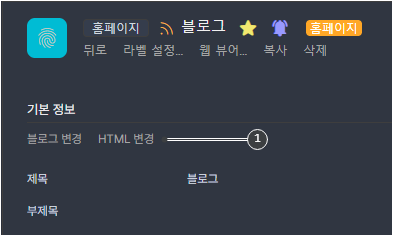 <1HTML 변경> 링크를 클릭해서 블로그 Hero 영역을 편집할 수 있습니다.