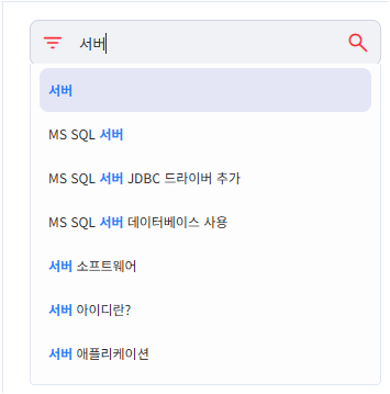 검색어 자동 완성 시 초성만 입력해도 관련 항목이 표시됩니다. 예를 들어 "ㄱㅅ"를 입력하면 "기사", "검색" 같은 항목이 함께 나타납니다.