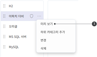 <미리보기>를 선택하면 해당 카테고리에 속한 태스크를 모두 보여줍니다. <카테고리 변경> 링크로 해당 태스크를 다른 카테고리로 일괄 재할당합니다.