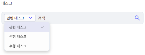 태스크와 태스크를 연결합니다. 관계 유형으로 관련 태스크, 선행 작업, 후행 작업 등을 지원합니다.