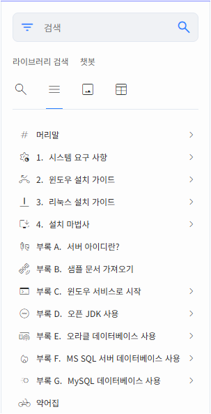 문서의 차례를 보여줍니다.