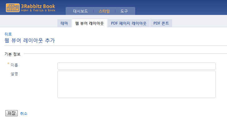 웹 뷰어 레이아웃 기본 정보(이름, 설명)를 입력합니다.