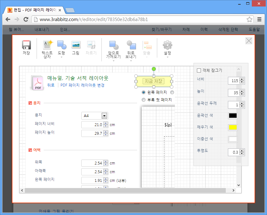 투명도 | 0과 1 사이의 값으로 객체의 투명도를 설정합니다. | 직사각형, 타원, 그림 |