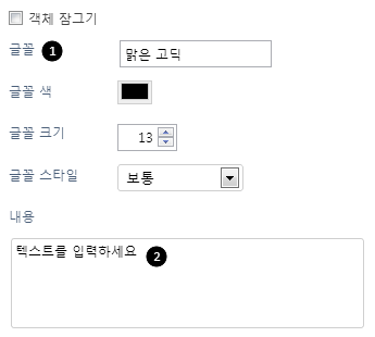 텍스트 객체는 다음 옵션을 설정할 수 있습니다.