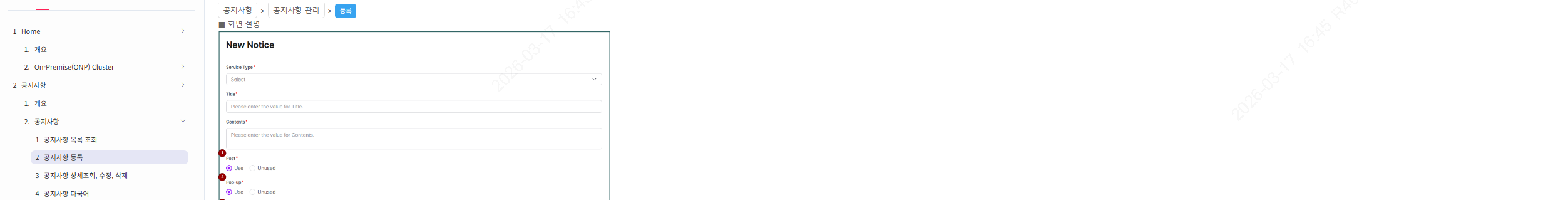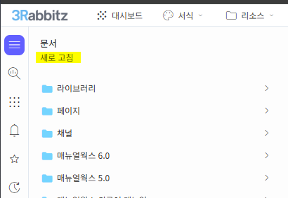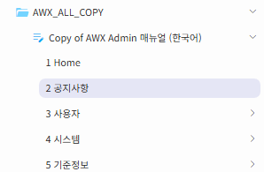 안녕하세요.. 메뉴얼웍스의 관리화면과 웹뷰어 화면에서 네비게이션 목차가 다르게 보여서 문의 드립니다. 관리자 화면에서 공지사항 아래 아코디언 화살표는 보이지 않습니다.
