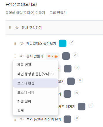 비디오 문서를 만들고 상세문서 페이지를 보면 첨부해주신 이미지와 동영상 클립 부분이 다르게 보입니다. (저는 오디오 라는 문구가 보이지 않습니다.)