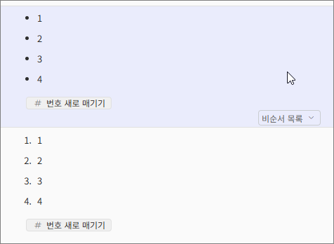 단락 유형을 변경해도 편집창에서 "# 번호 새로 매기기"라는 문구가 계속 표시됩니다.