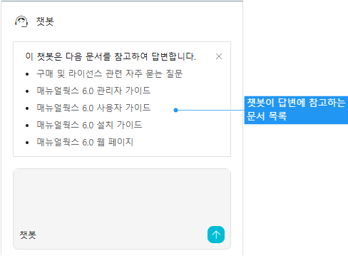 매뉴얼웍스는 OpenAI, Gemini 등이 제공하는 API로 ‘챗봇’, ‘글쓰기’, ‘맞춤법 검사와 교정’, ‘아이콘 추천’과 같은 업무에 유용한 AI 어시스턴트 기능을 제공합니다. AI 어시스턴트 기능을 매뉴얼웍스에 연결하여 업무 지식을 문서로 체계화하고, 정보를 찾아 제공하는 데 활용합니다.