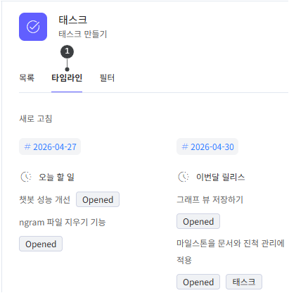 <태스크 | 마일스톤> 메뉴로 이동합니다.