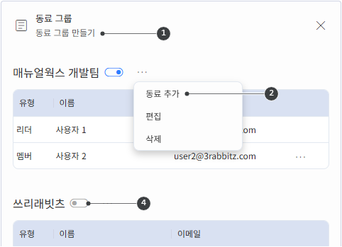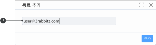 <2동료 추가> 메뉴를 이용해 동료 그룹에 동료를 추가합니다. 3에 이메일을 입력해 추가합니다.