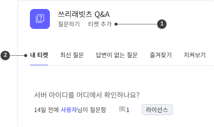 Q&A 채널에 질문할 때 다른 사용자가 내 질문을 보지 못하게 하려면, <1티켓 추가> 링크를 클릭해 티켓을 만듭니다.