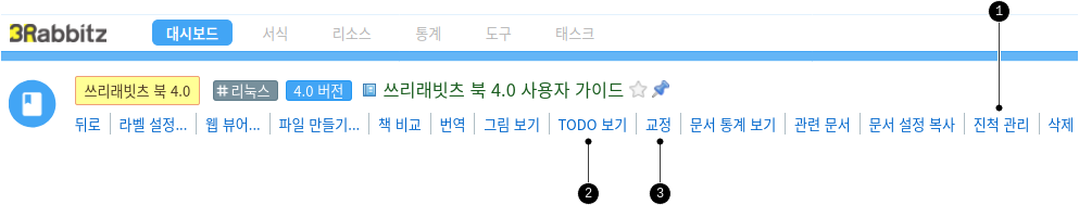 “문서 진척 관리” 기능은 쓰리래빗츠 북 4.0.4 버전부터 지원합니다.