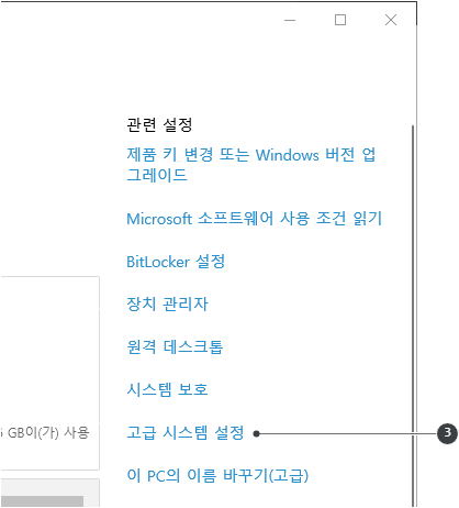 관련 설정에서 <3고급 시스템 설정> 메뉴를 클릭합니다.