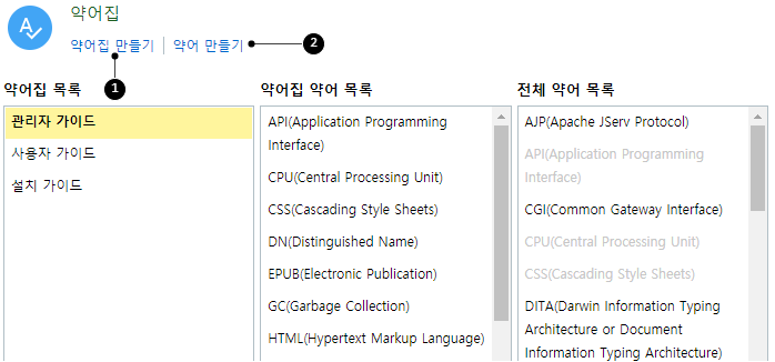 약어집 장을 만들어야 웹 뷰어 사이드 메뉴에 약어집을 추가합니다.